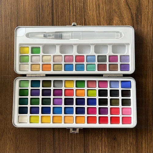 You can rest assured to buy 72 Colors Solid Watercolor Set With Metal Box from our factory. Travel Watercolor Set All-In-One Watercolor Set with Brush. Lightweight and sturdy metal tin box making it perfect for on-the-go painting. You can paint absolutely anywhere. indoors, countryside, park, beach, garden and city.